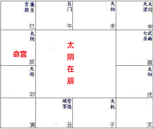 太阴在辰落陷,在戌宫居旺地。一般说来,以安命戌宫为佳,人生发展较顺利。如果辰宫的太阴见到吉星吉化较多,也是富贵之命;不见吉星、吉化,安命辰宫者普通。